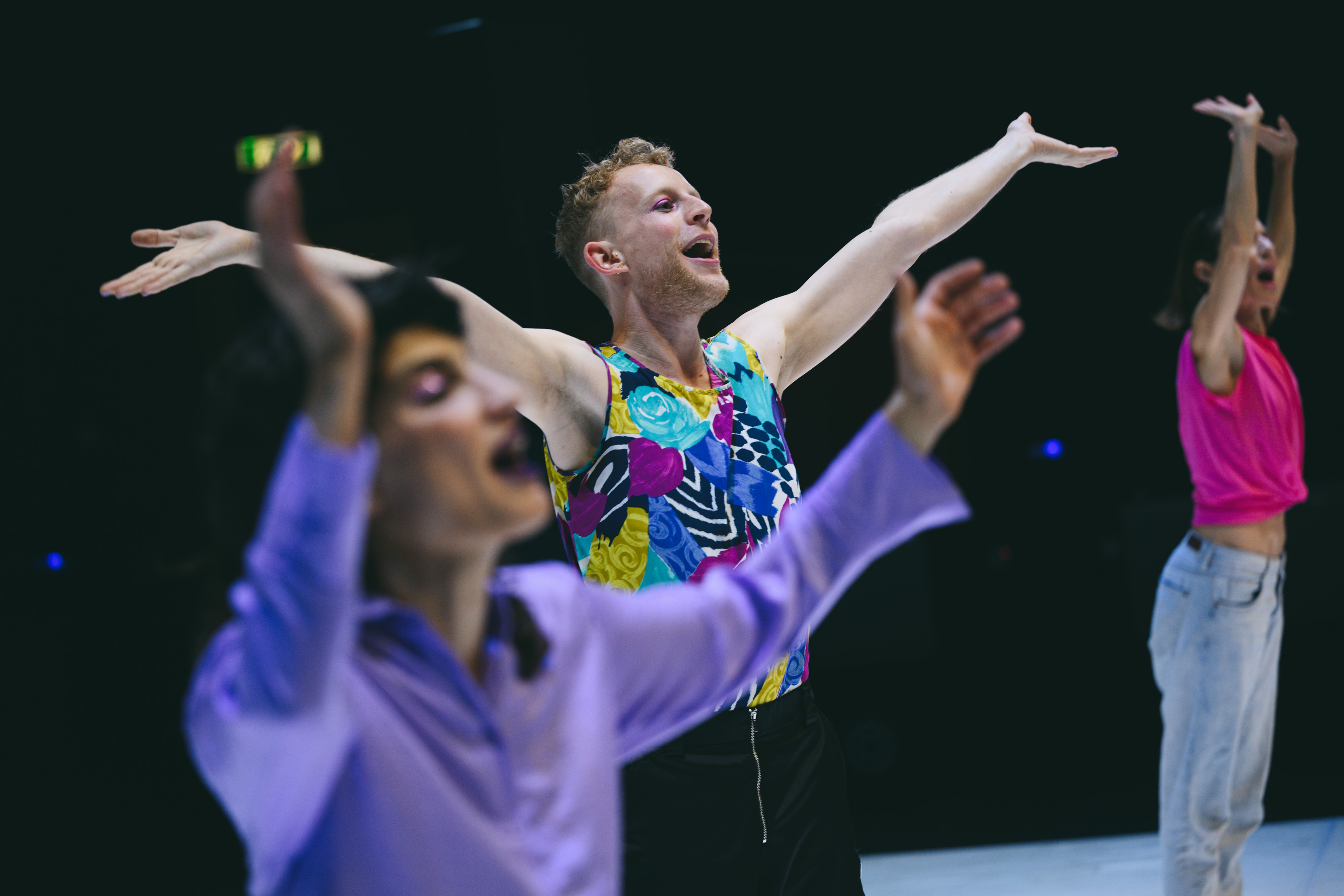Say Yes! again and again is a performance exploring questions of identity and gender through a playful and optimistic lens. Inspired by Adrienne Maree Brown’s Pleasure Activism: The Politics of Feeling Good (AK Press, 2019), the choreographer, together with the creative team, reflects on what activism can mean today, engaging with positivity and empowerment in saying ‘yes’ to ourselves and to our needs. On stage, three performers from Cyprus, Greece, and the Netherlands use physicality and linguistic forms to share personal experiences that have shaped them as individuals, opening a space to reflect on social norms, queer subjectivities and normative pressures. The work is part of the choreographer’s ongoing research to address social justice issues. Envisioning performance as the beginning of a dialogue with the audience, she explores various performative ways of engaging with body politics.